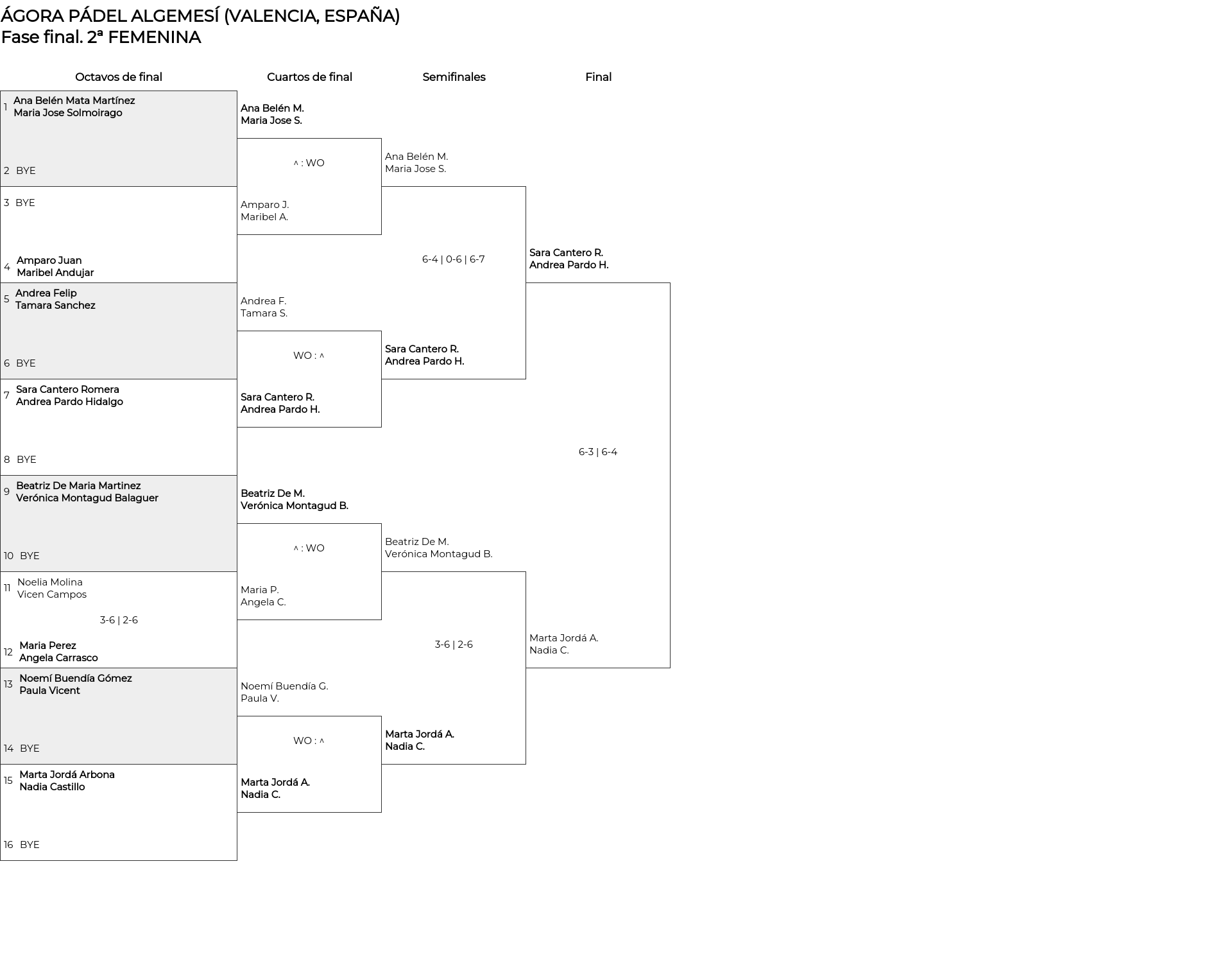 Cuadro principal 2ª FEMENINA