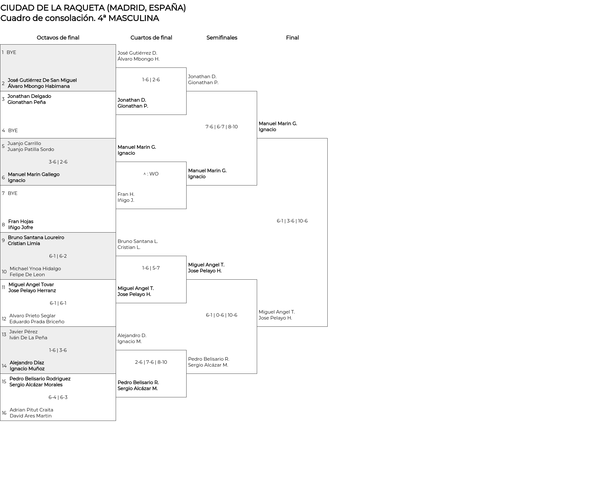 Cuadro de consolación 4ª MASCULINA